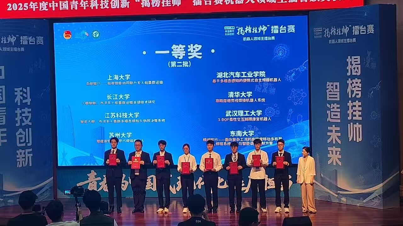 日前,汽车智能制造学院在国家级赛事中再传捷报。在2025年挑战杯“揭榜挂帅”机器人领域主擂台赛上,於双飞博士指导的《基于多模态感知的便携式自主焊接机器人》项目斩获全国一等奖。