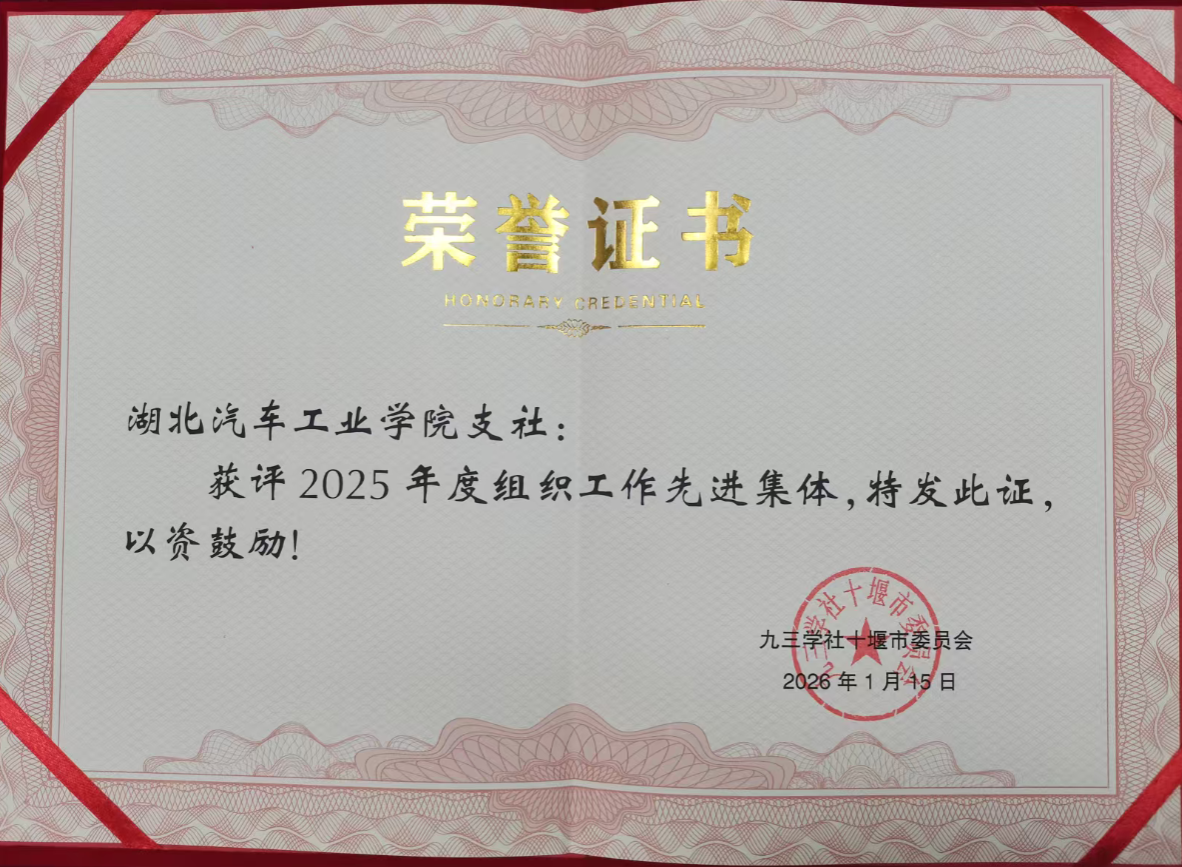 1月18日上午,九三学社十堰市委员会2025年度总结表彰大会召开。十堰市政协副主席、九三学社十堰市委主委耿梅作了年度总结报告,会议对全年先进集体和先进个人进行表彰。九三学社湖北汽车工业学院支社荣获“2025年度组织工作先进集体”称号,这是支社连续两年获此殊荣;支社上届主委李学兵获评“参政议政先进个人”,社员杨毅获评“优秀社员”。